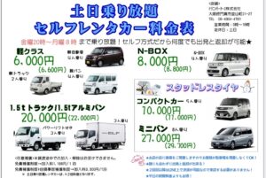 週末レンタカー、週末24時間利用、それぞれご予約承り中!!