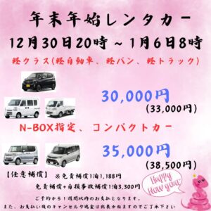 年末年始レンタカー コンパクトカー増車!!ご予約承り中!!