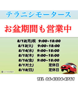 お盆期間中!レンタカー利用可能!通常営業しております!