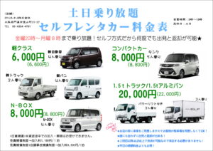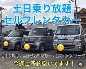 土日乗り放題パックやってます!軽クラス6000円~乗れる!ご予約は...